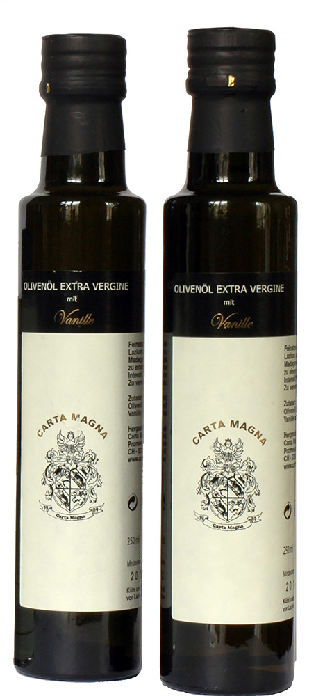 Aromatisiertes Olivenöl ist eine Bereicherung für die ambitionierte Küche. Sein unverwechselbarer Geschmack, aber auch die sehr gesunden Inhaltsstoffe machen Olivenöl zur Königin aller Öle. Basis unserer aromatisierten Olivenöle ist ausschliesslich bestes, lagenreines Olivenöl aus dem Lazium. Die Früchte werden von Hand geerntet, das Öl wird in kleinen, hochmodernen Anlagen unmittelbar nach der Ernte kalt gepresst. Unsere aromatisierten Öle enthalten immer nur Olivenöl sowie eine natürliche Zutat wie Vanille oder Zitronen in allerbester Qualität.