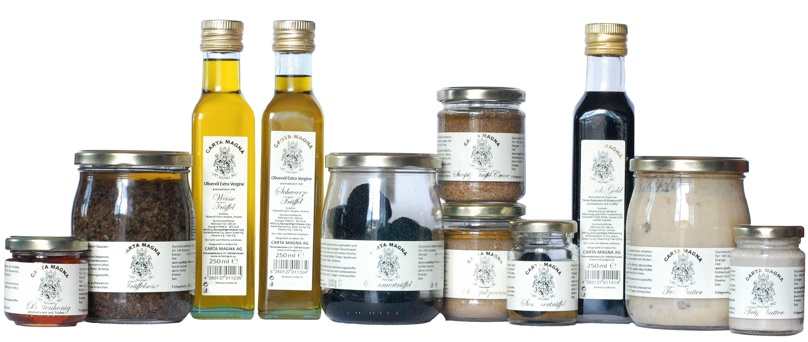 Leckerste Trüffelprodukte bieten wir in einer Qualität an, wie sie bisher im Markt nicht bekannt waren. Sie werden ausschliesslich unter Verwendung bester Trüffel aus Italien hergestellt. Unsere Trüffelprodukte enthalten weder Konservierungsstoffe noch Farbstoffe. (Bitte klicken Sie für eine grössere Ansicht auf ein Produkt und für unseren Produktkatalog hier.)